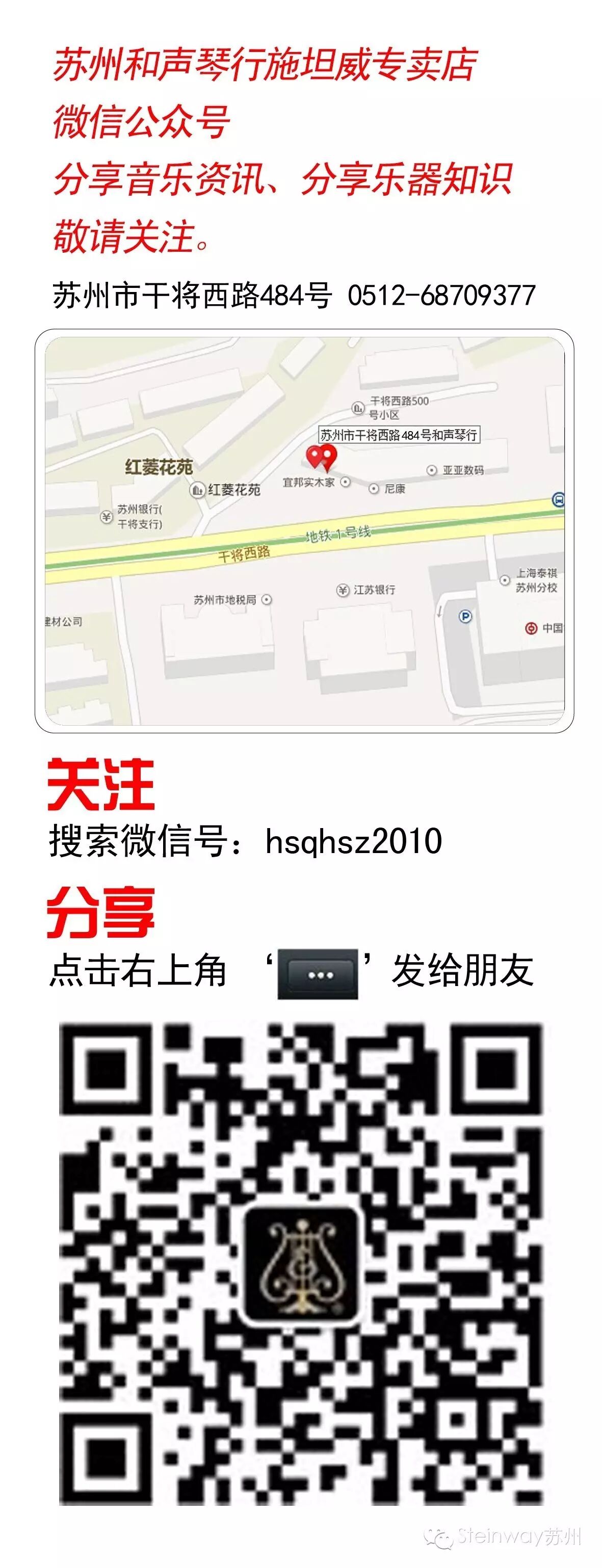 *关注以下二维码并转发此条微信至朋友圈,可免费获取门票两张,数量有限,赠完为止。(苏州施坦威钢琴客户可直接至门店领取)。详情请咨询:0512-68709377。地址:苏州市干将西路484号施坦威钢琴专卖店。