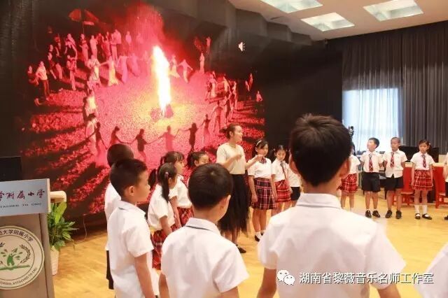 湖南省黎薇音乐名师工作室首席名师黎薇率领其教研团队参加交流学习,工作室青年音乐教师陈婷代表湖南地区展示3年级音乐课《阿细跳月》。来北京前至上课的头晚,黎薇老师及明德麓谷学校音乐组一直在全力帮陈婷老师设计、打磨,《阿细跳月》是一节颇有意思的律动欣赏课,有机融合了达尔克罗兹体态律动教学法,尤其注重师生间的密切互动。一节优课凝聚的是团队成员的集体智慧,体现的是工作室大家庭的和谐与团结!这节课有幸得到了各级音乐教研员的悉心指导,中国教育科学研究院许洪帅博士、长沙市音乐教研员娄瑶琪老师都给予了宝贵的改进建议。在首师大附小交流研讨期间,为确保学习更为有序、更加高效地开展,黎薇老师在团队核心成员到达培训点的当晚,组织召开了第一次碰头会议。嘱托老师们在学习期间应加强“团队合作、各司其职、责任上肩、教学提升”的要求,并对分组整理课堂实录、撰写听课反思、专人摄像摄影等提出具体安排。老师们白天积极听课、评课,与专家们当面请教在音乐教学中遇到的困惑等。