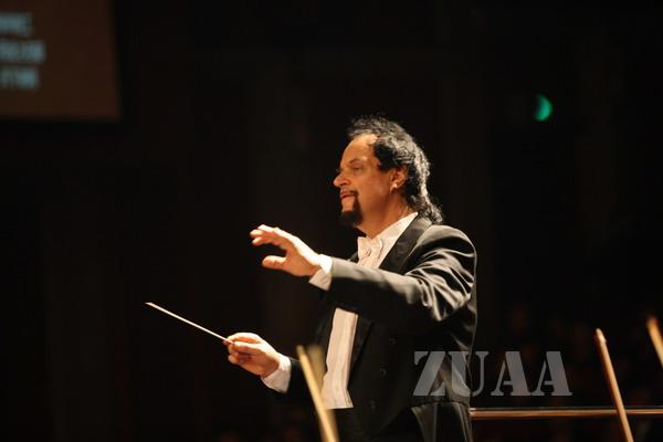 音乐会历年邀请国内外知名指挥家,图为来自乌克兰的指挥家维克多·巴达诺夫和文琴艺术团教师团长周聪