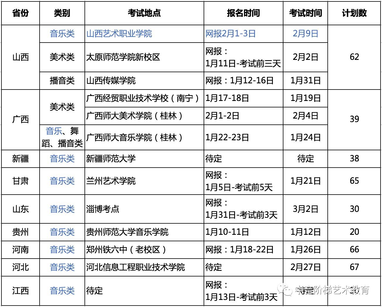 三、艺术类招生专业及计划