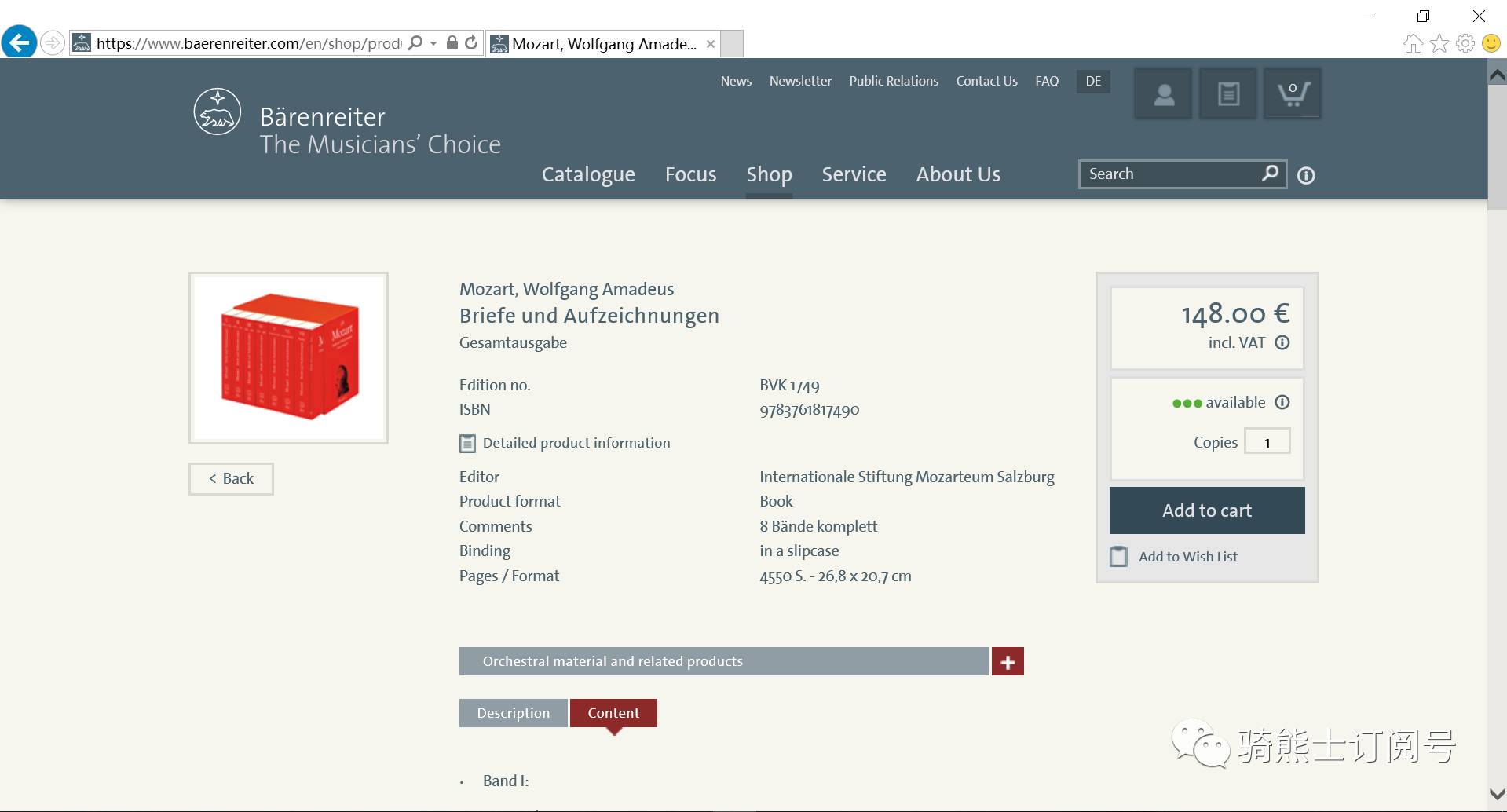 【德国骑熊士原版书籍 莫扎特书信全集 德文 BVK1749】,点击链接再选择浏览器打开http://c.b0yp.com/h.6lXNa8?cv=ZaXBZu7wC4K&sm=0637cd,或复制这条信息¥ZaXBZu7wC4K¥后打开手机淘宝