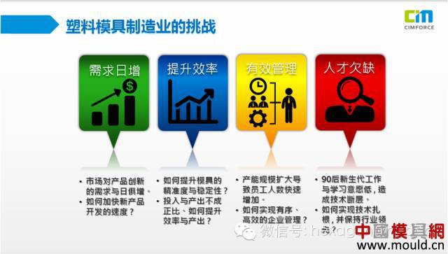 3、还有就是谈到为什么软件只在中国做,其他国家都没有。这里有一个很大的特色,中国所有的模具厂规模要大于日本和欧洲,我之前管理的一个工厂,有2200名员工,24小时开工。除了中国,这在其他国家都看不到。规模如此之大,你需要考虑如何进行有效的管理和控制整个工厂的绩效,这是一个很重要的问题。