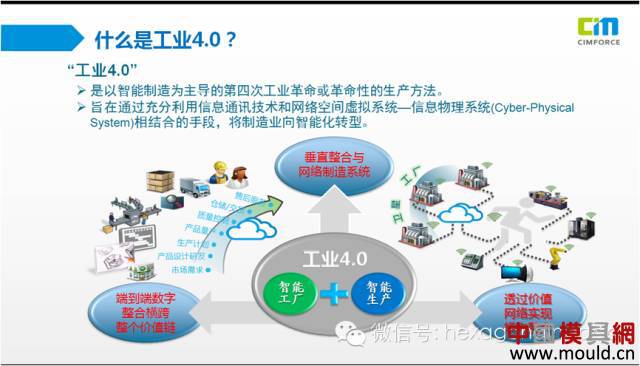 关于工业4.0,有很多的用途和讲法,不外乎利用网络的办法,把所有的东西连接起来,连通整个制造的部分。