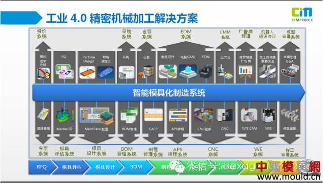 智能制造,从专案开始,到成型试模,包含了很多的东西,很重要的一部分就是虚实结合,工业化和信息化的融合。其重点在于,如果我们开始不从模型开始控制,就没有办法把整个工厂的管理做起来,也无法将自动化转化为现实。