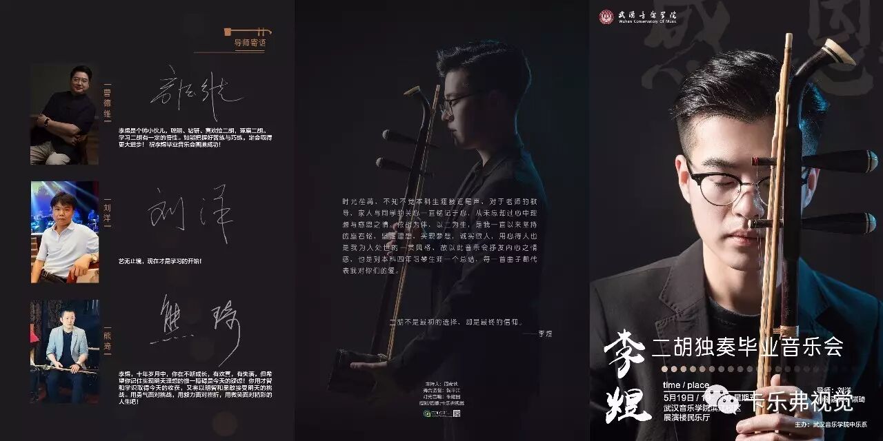 时光荏苒,不知不觉本科生涯接近尾声,对于老师的教导,家人与同学的关心一直铭记于心,从未忘却过心中理想与感恩之情。依胡为伴,以二为生,是我一直以来坚持的座右铭,坚定理想,实现梦想,诚实做人,用心待人也是我为人处世的一贯风格,故以此音乐会抒发内心之情感,也是对本科四年习琴生涯一个总结,每一首曲子都代表我对你们的爱。