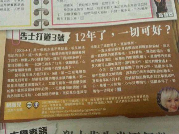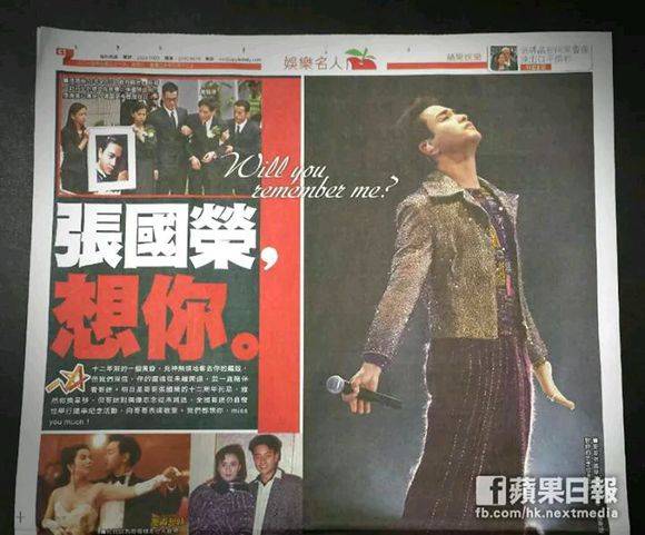 为张国荣送上一整版的缅怀文章