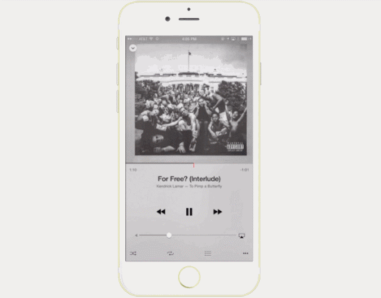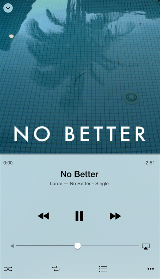 新的MiniPlayer(迷你播放器)是全新音乐应用中的一个亮点功能,它可以让你快速访问正在播放的音乐和让你在浏览专辑的时候进行回放。点击迷你播放器即可快速导航到“正在播放”界面。