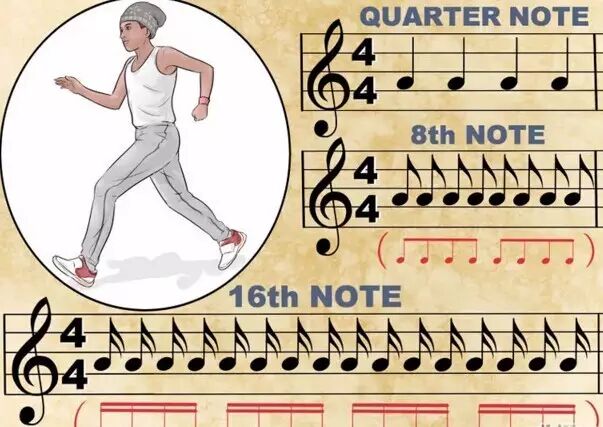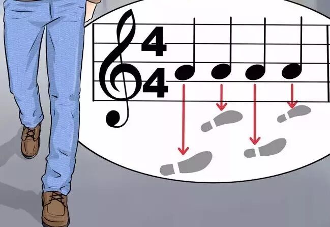 想象你正在走路,一步就是一拍,用音乐表达出来就成了一个四分音符。在大多数的西方音乐中,每小节有四拍。现在用你的步伐来感受节奏。