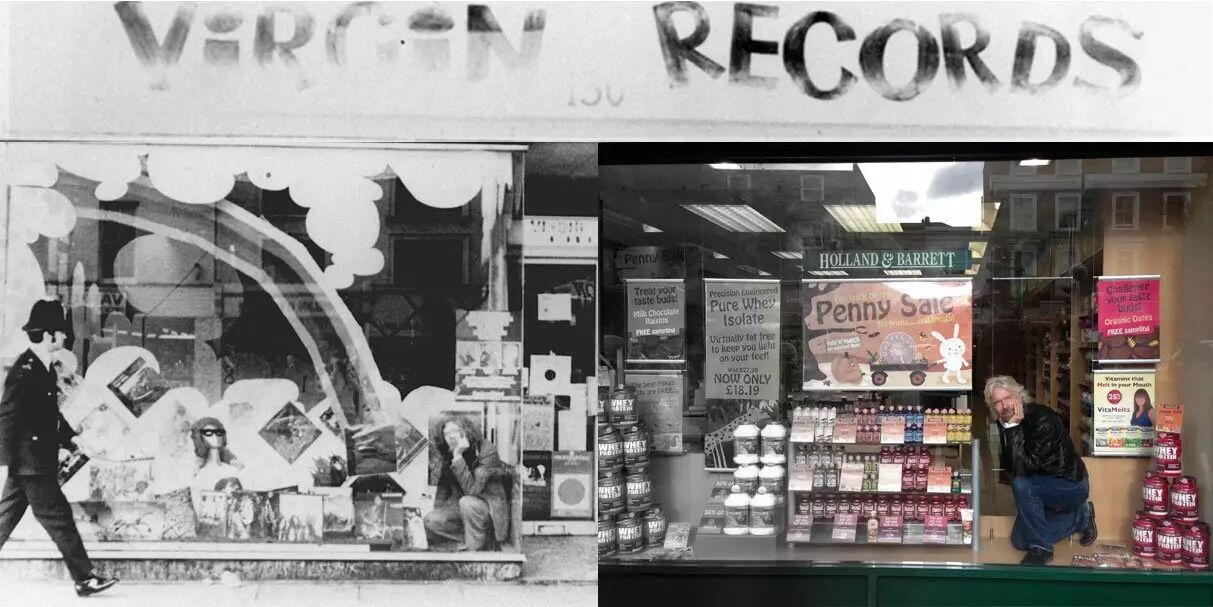 1970年,所有音符,都从伦敦牛津大街上的第一家唱片店开始敲响。那个时候 Richard Branson 手里资金短缺,无法承担高昂的房租。恰好偶遇牛津大街有一家鞋店的二楼空着,他就去找老板商量,在有别的人花钱租下二楼之前让他先免费使用。