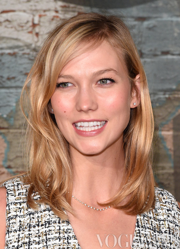 2014年初Karlie Kloss剪断头发,带动了一整年的波波头风潮。2015年初,她的头发长成了long bob,与轻盈的侧分刘海搭配看起来也不错。
