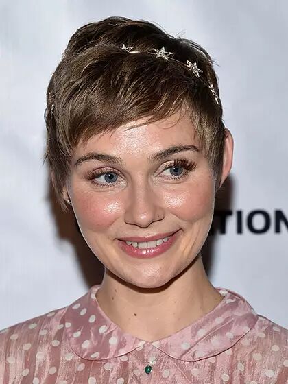 不管你是打算把头发留长,还是只想换个与平时不同的造型,适合短发的另一个技巧就是利用发饰。可以像 Clare Bowen一样试试吸睛的金属头带,或者即兴纵横交错地别上很多亮晶晶的发卡。