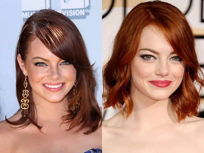 Emma Stone也不是生来就是时尚偶像的,左边的发型也不是不好看,但是放到现在看,就觉得有些土气,还有一只夏威夷本土女孩的感觉,右边的蓬松WOB就提升了时髦感。