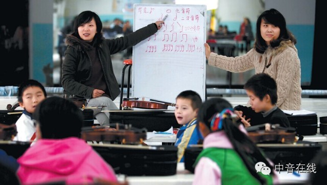 “音乐之帆”的教师给北京房山安琪儿孤儿院的孩子们上乐理课。