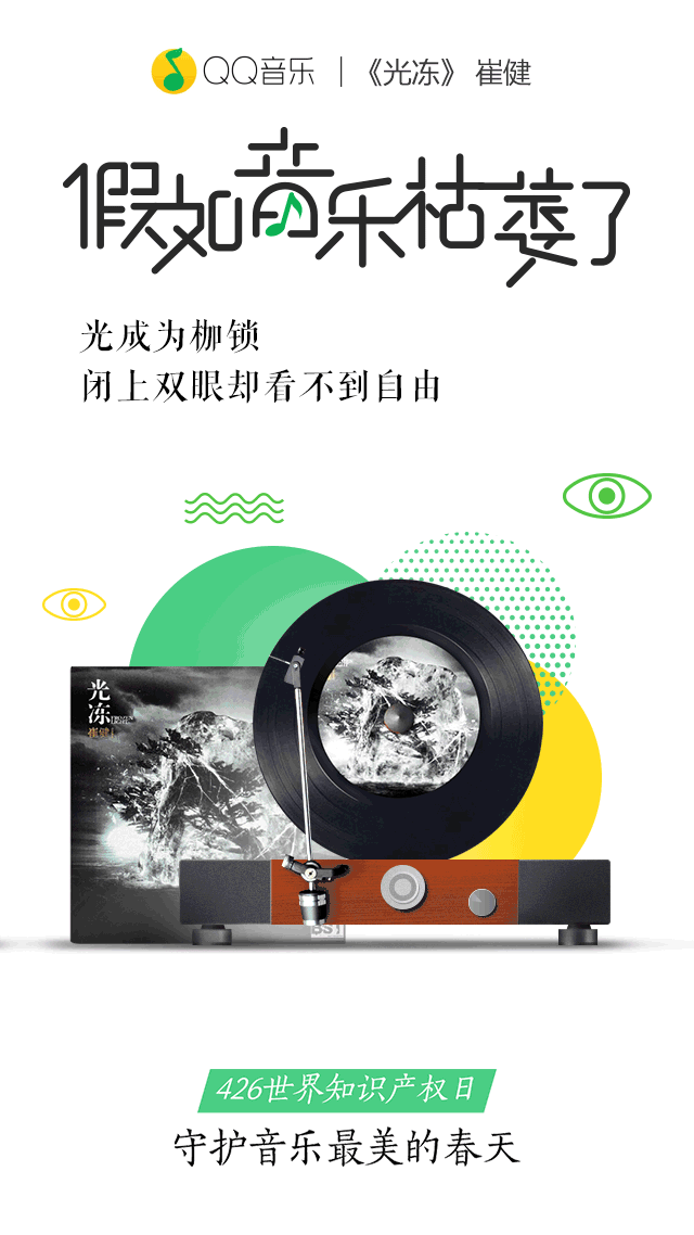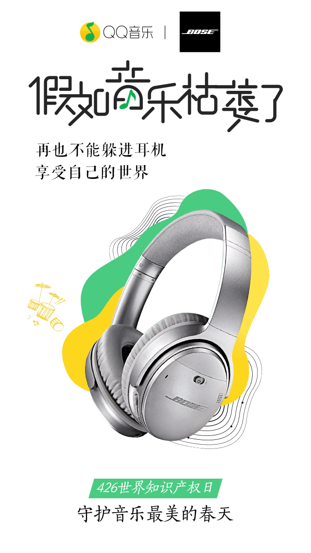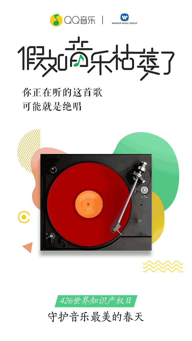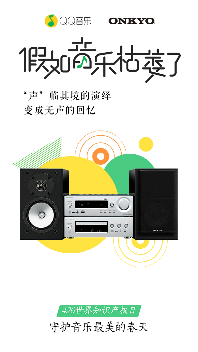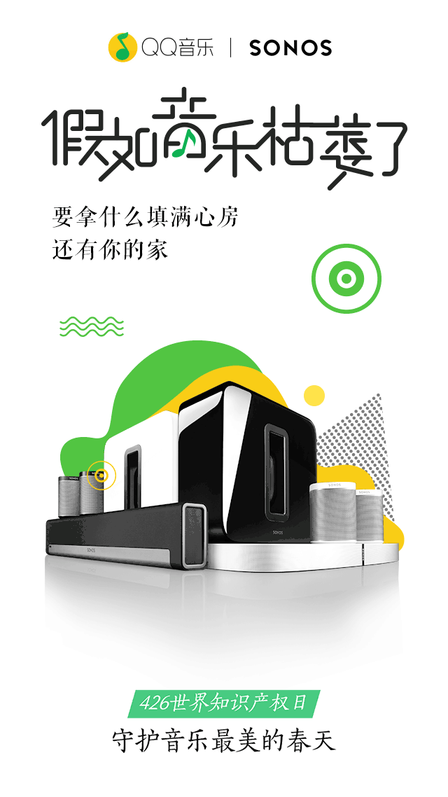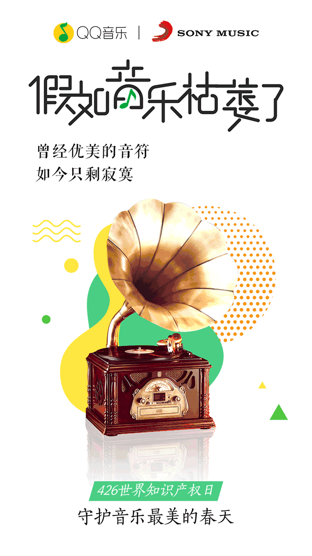 4 月 26 日世界知识产权日,QQ 音乐携手索尼、华纳两大唱片公司及 BOSE、SONOS、安桥、漫步者、DTS、全民 K 歌、酷我、天翼爱音乐、福特深度合作品牌共同发声,用音乐串联生活场景,打造话题#假如音乐枯萎了#,将人们带进没有音乐的世界,道出版权的重要,唤醒大众的版权意识。