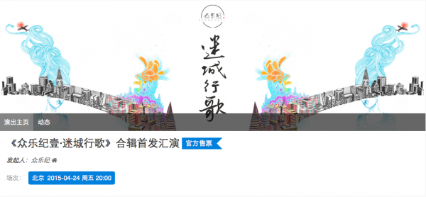 3月19日,一张名为《众乐纪壹·迷城行歌》的城市民谣合辑在虾米音乐悄然上线。乐迷不仅可以通过虾米APP试听,还可以在乐童音乐众筹平台上下单,以七折的价格买到一张同主题汇演门票。