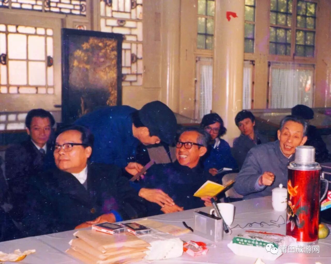 1986年“郑怀兴剧作研讨会”在北京举行,左一谢宝燊,中间林栋志,右边郭汉城