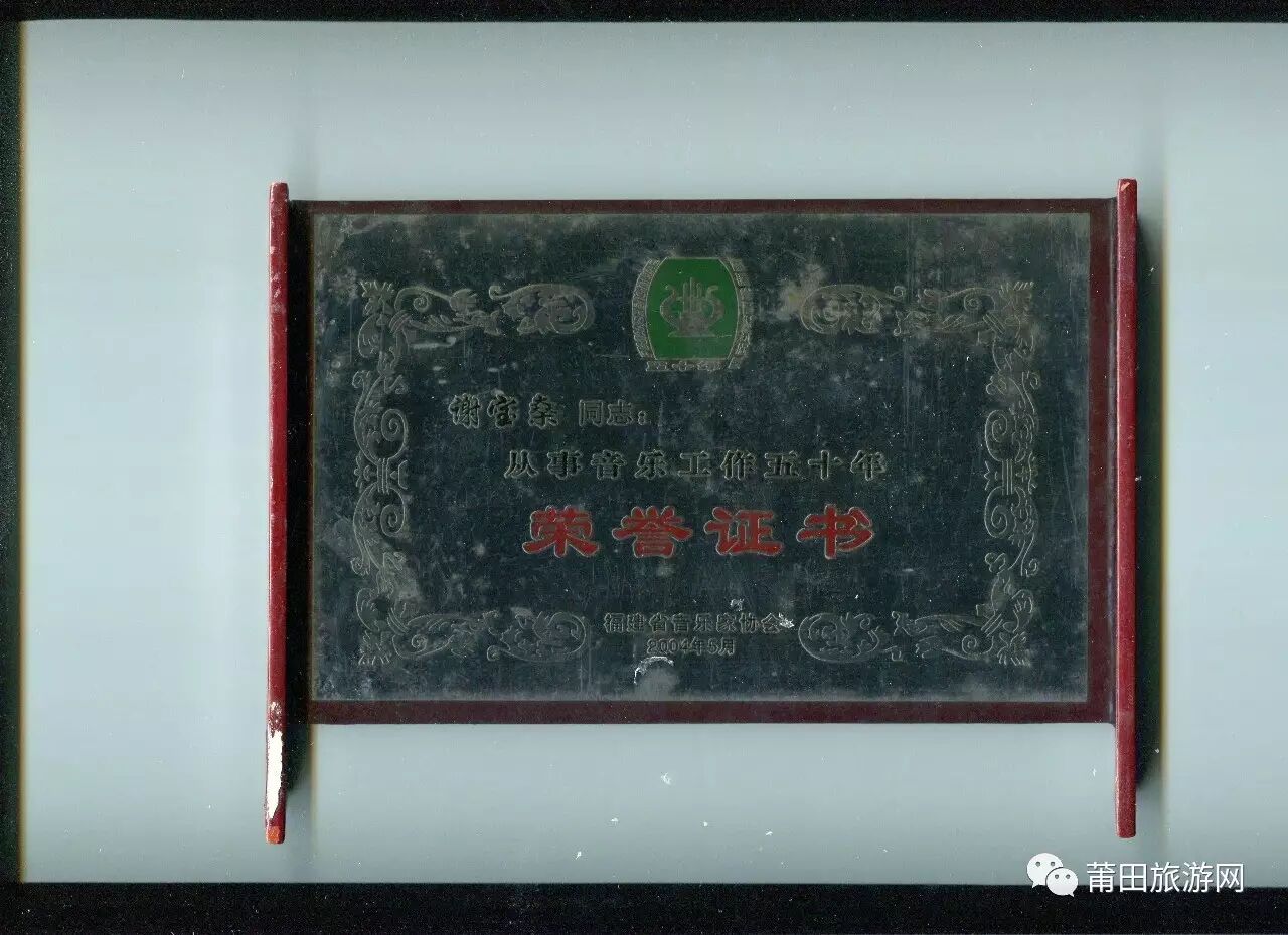 谢宝燊先生被福建省音协授予“从事音乐工作五十年”荣誉证书