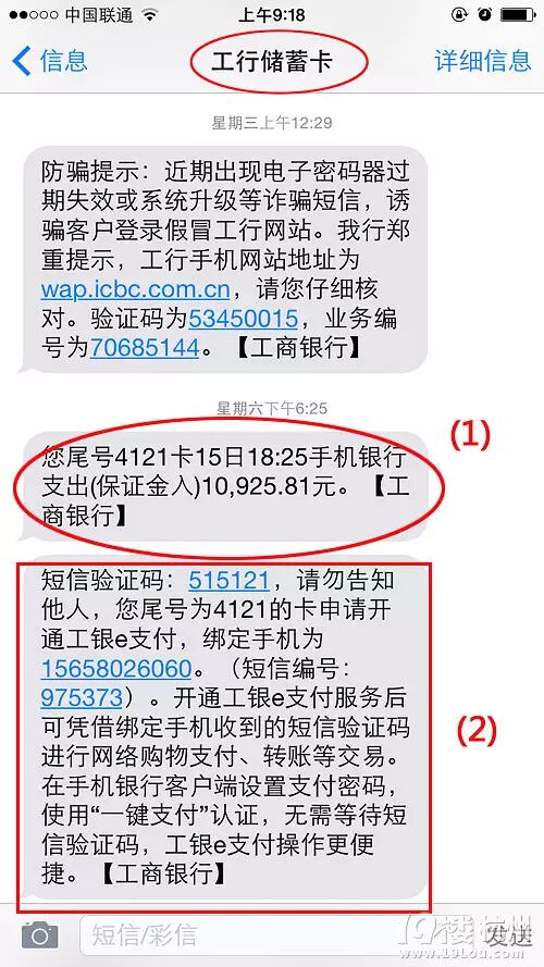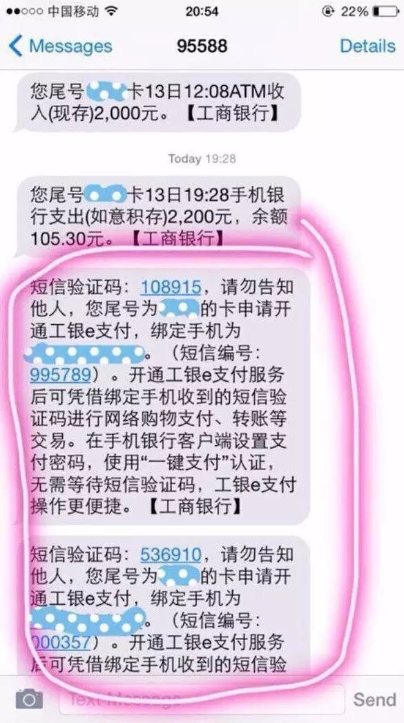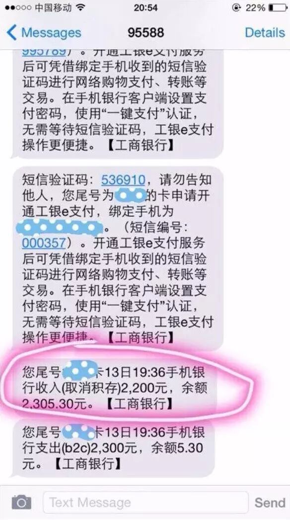 我还仔细看了下,这个的确是工行储蓄卡95588发来的短信,和我前后的短信都是联系在一起的