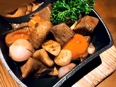 精选优质进口牛舌,选取牛舌中最是鲜嫩的中间部分,在烹制过程中加入百里香,黄油,大蒜等,等着汤汁慢慢被收到牛舌当中,味道也一点点渗透进肉质当中。一端上桌,就被这精巧雅致的摆盘吸引住了!