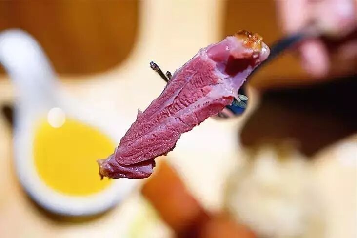鲜亮明快的配色,和质朴的器皿相辅相成,妥妥牛舌界的高富帅。劲瘦软弹的肉质,在细腻清晰的纹路里,充满口腔的香嫩,余韵里满是回味的香气,简直太好吃啦~