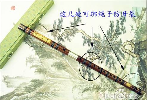 有时由于天气的变化,太冷或太热或由于竹质过嫩,竹节过少,笛身都易破裂。为防止这种破裂,或者在已破裂之后,可在两端和吹孔至膜孔之间,膜孔至第六孔之间,这两处各用丝线捆缠(有伸缩性的塑料最好不用)。或将头尾用铜(或铝)圈箍住。