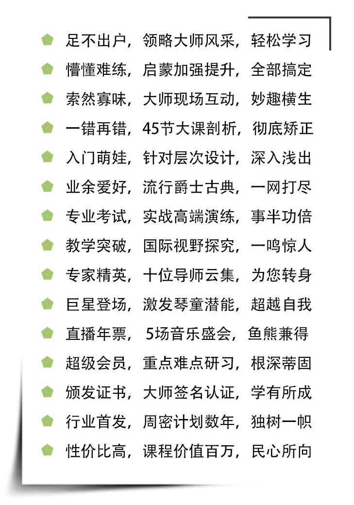 2018年50场专业钢琴课程包含: