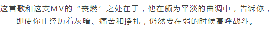 看着MV,也可以感受到“总有一个人在爱你”,“总有一种理想信念让你奋不顾身”,似乎可以给我们的“丧燃”人生注入一些燃料。