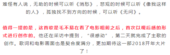 毛不易发新歌了,这次是为电影《无问西东》全新创作的宣传曲——《无问》。