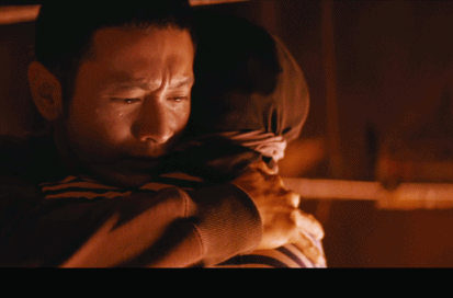 两人雨夜中紧紧相拥,哭到颤抖,又和“亲吻伤疤,带他回家”一句非常吻合。