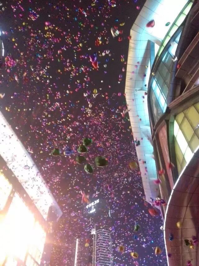 等到了9点,人群基本上是水泄不通了,且异常亢奋。前方不时有骚动传来,引得后方的人们激动的过早放飞了气球。真正倒计时时相当震撼,一万多人整齐划一的倒数,“0”数后同时放飞升天的气球乌压压盖住了天空。周围认识不认识的人们互相祝福,道声“新年快乐”。