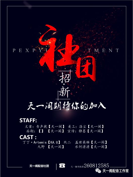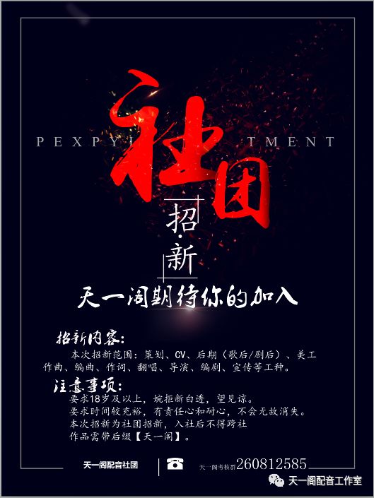 天一阁配音工作室招新啦,欢迎对广播剧/有声漫/原创歌曲及视频有兴趣的同学加入我们!
