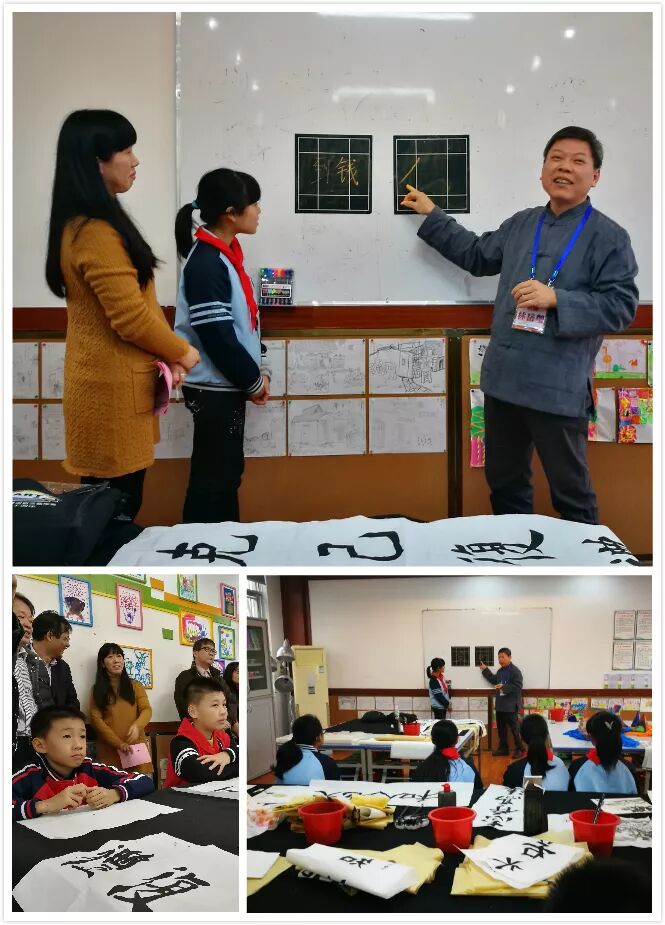 花莲县书法学会理事长林岳莹还给江南小学书法社团的同学们和老师上了一堂精彩别致的书法课。