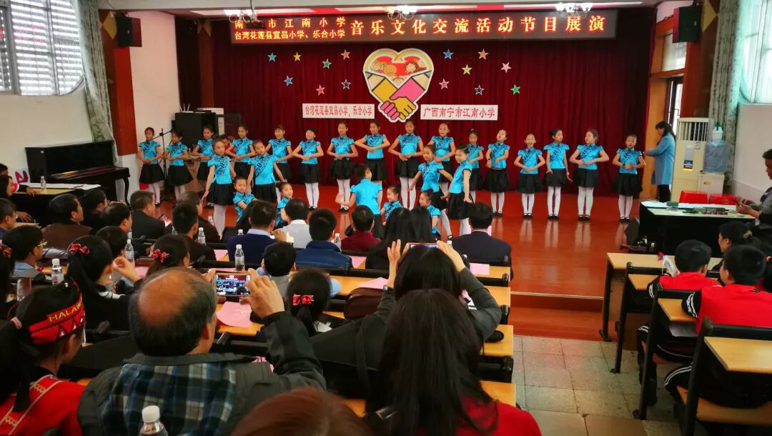 近日,台湾花莲县宜昌小学、乐合小学访参学团一行40多人到江南小学开展音乐文化交流联谊活动。