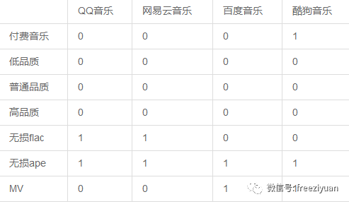 至于能不能下载收费和无损音质 每个音乐平台不一样 具体如下表所示:(0为可以 1为不可以)