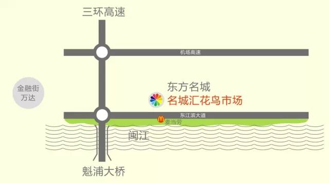 自驾—沿东三环至魁岐互通下,沿江滨东大道往马尾方向行驶,至名城汇花鸟市场(麦当劳对面)。
