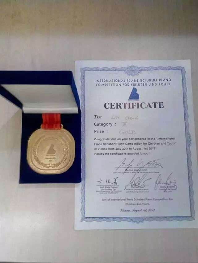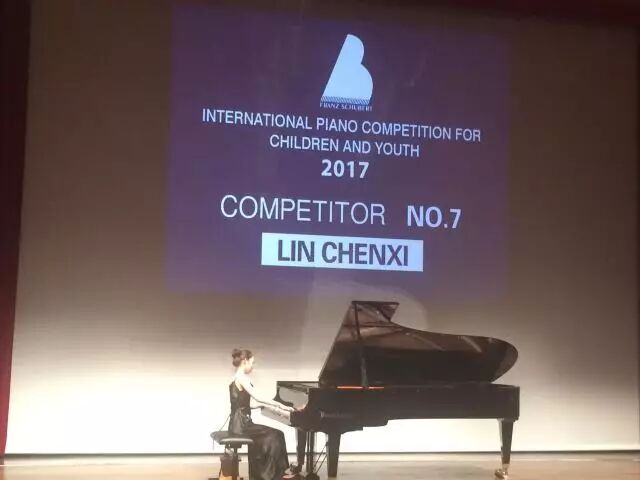 2017舒伯特国际青少年钢琴比赛(The International Franz Schubert Piano Competition For Children and Youth 2017) 总决赛于2017年7月30日至8月1日在奥地利首都维也纳MuTh Concert Hall音乐厅举行,来自欧洲各国以及中国的参赛选手经过紧张激烈的角逐,我校初中2016级12班的林晨曦同学喜获大赛少年一组金奖并受邀参加闭幕式颁奖音乐会演出。