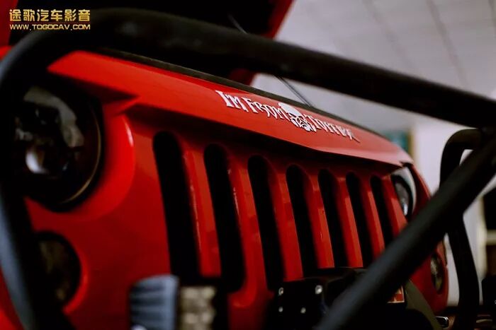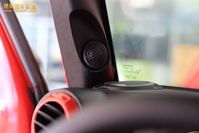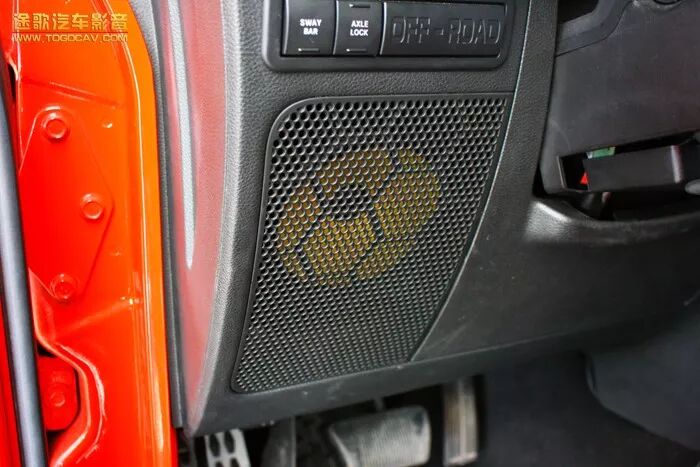 ▲美国K牌 8寸顶级L7原厂铝合金音箱安装在前排扶手位置。这样既避免了玩水毁音响的后顾之忧,又美观不占用车内空间。音乐与我们为伴,让我们在越野之路尽情撒欢!