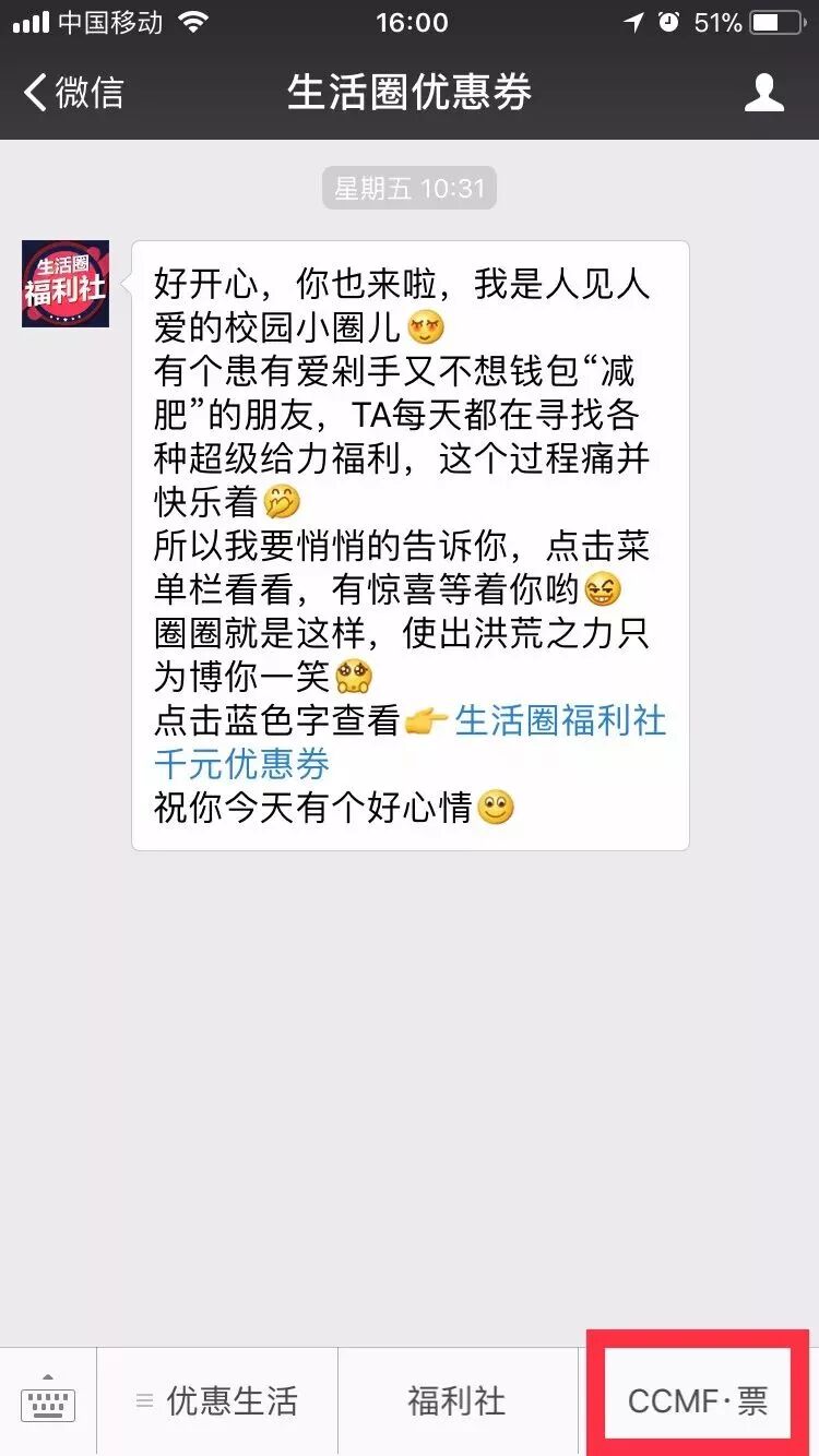 1.关注【生活圈优惠券】公众号(扫描下图二维码)