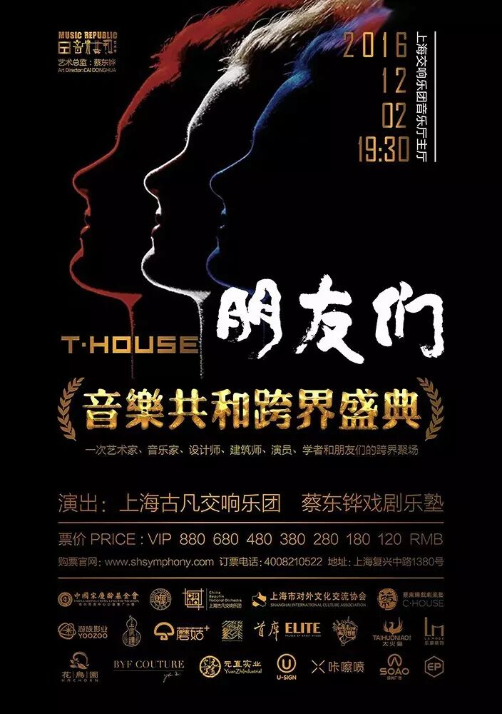 【T•HOUSE朋友们 音乐共和跨界盛典】12月2日19:30,上海交响乐团音乐厅!我们不见不散!