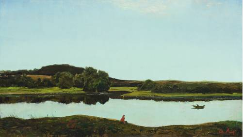 梅尔尼科夫作品:《河边》纸板油画46x81cm1987年