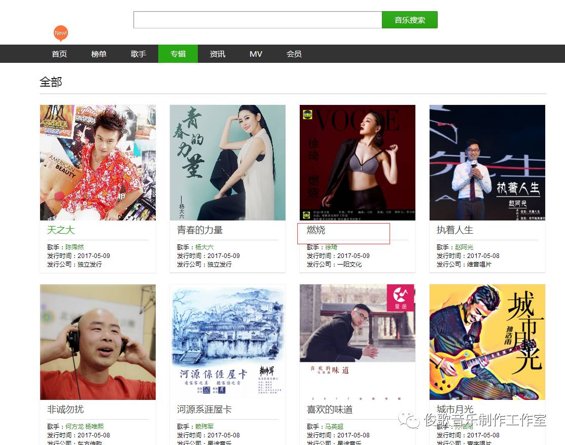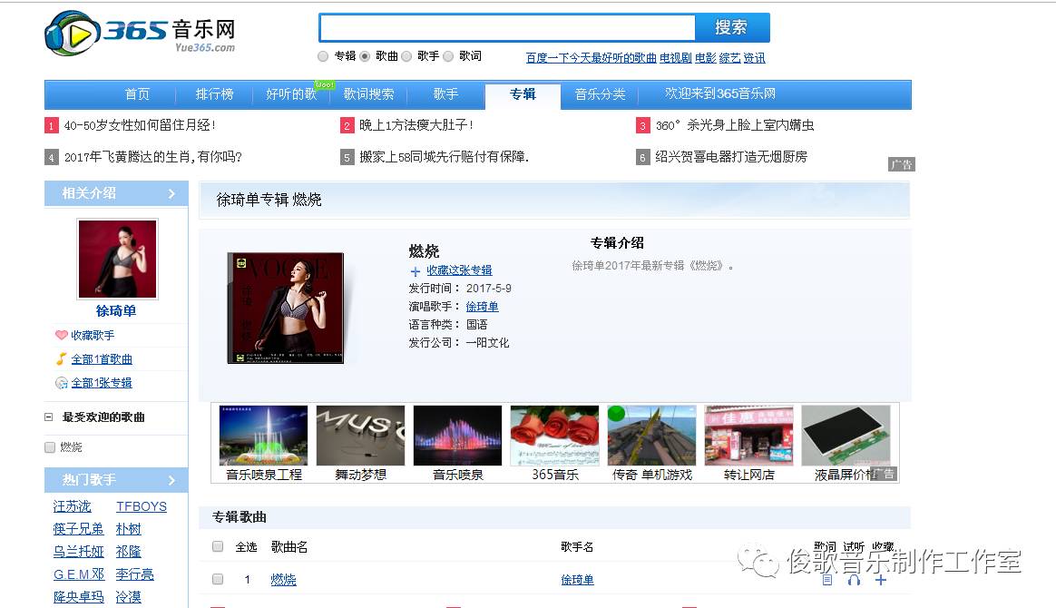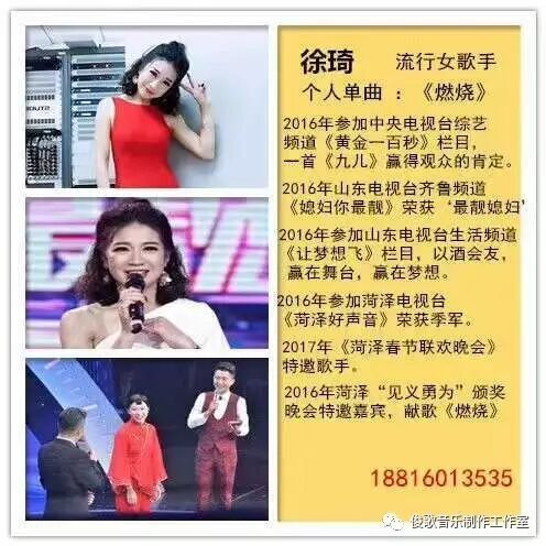 2017年5月初,大陆流行女歌手徐琦发布首支单曲《燃烧》,该歌由著名音乐人李守俊(作词)和李智(作曲)合力打造、由【俊哥音乐制作工作室】全力推出的重量级歌曲《燃烧》震撼发布!