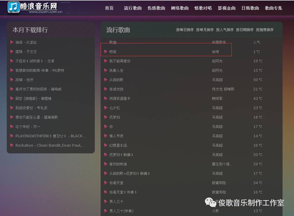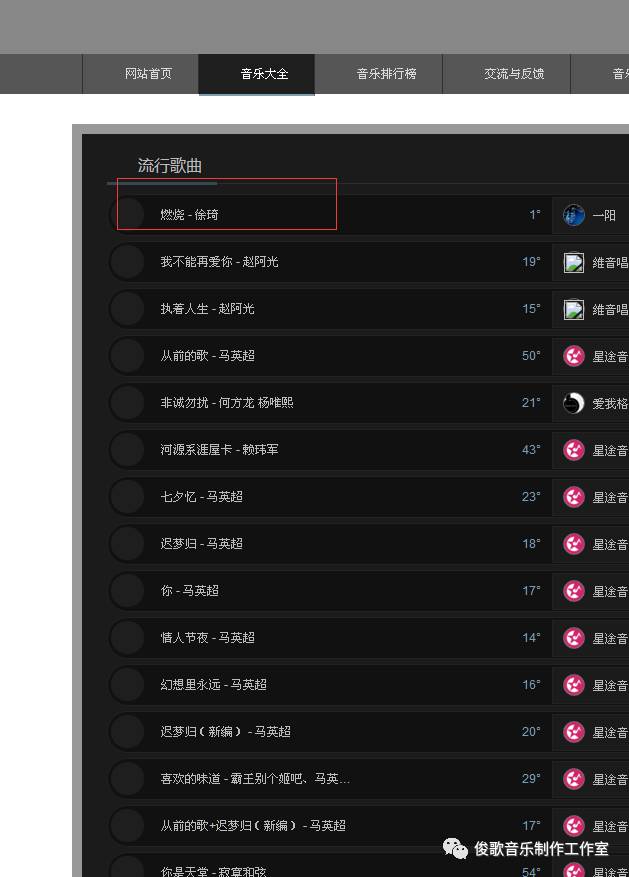 “制作最灵动的歌曲,孵化最优秀的歌手”,『俊歌音乐制作工作室』精心雕琢歌曲制作的每一个细节!《燃烧》制作完成后,俊歌及『俊歌音乐制作工作室』推广力度更是强悍!