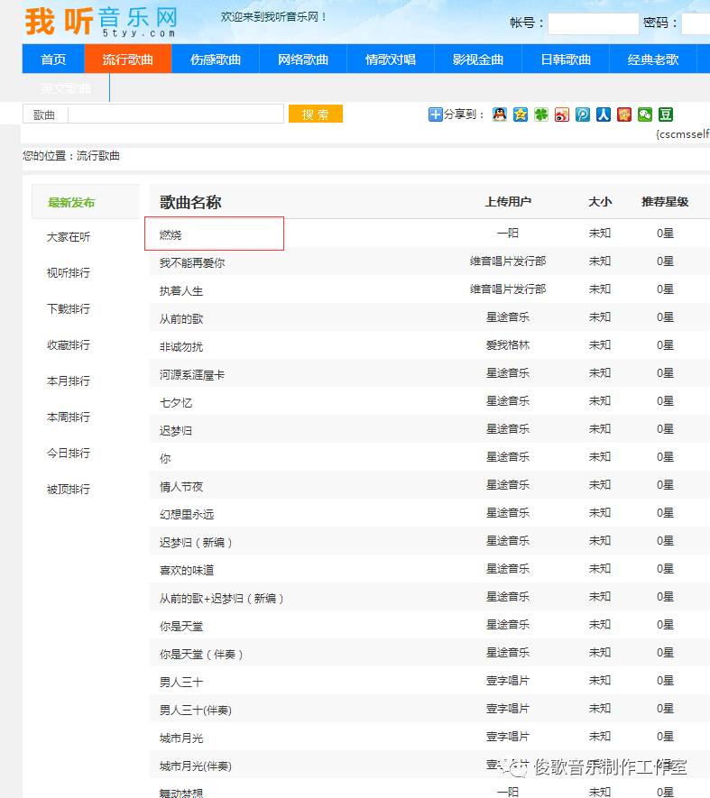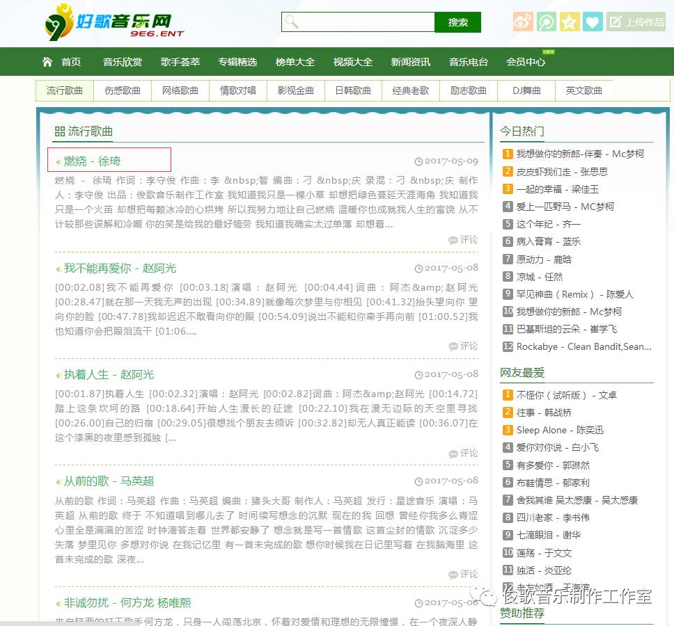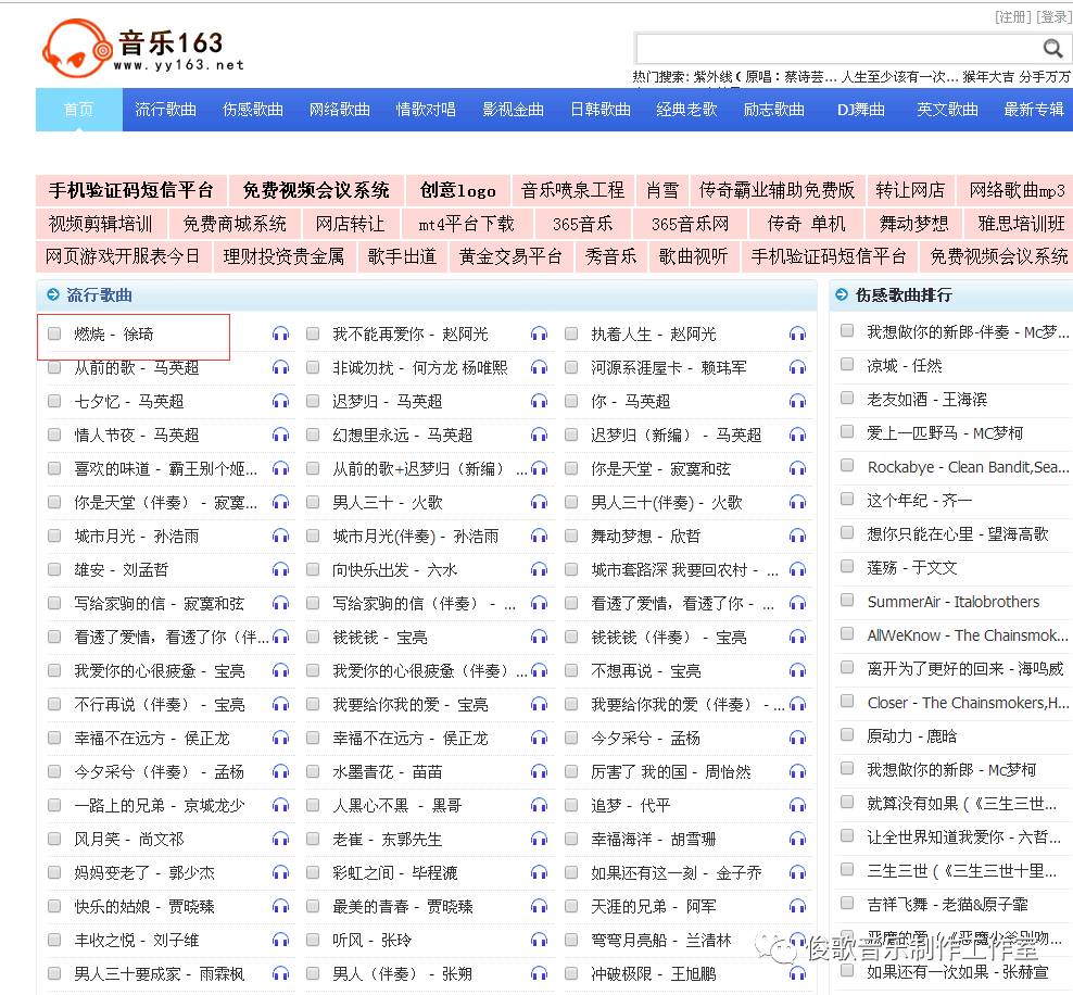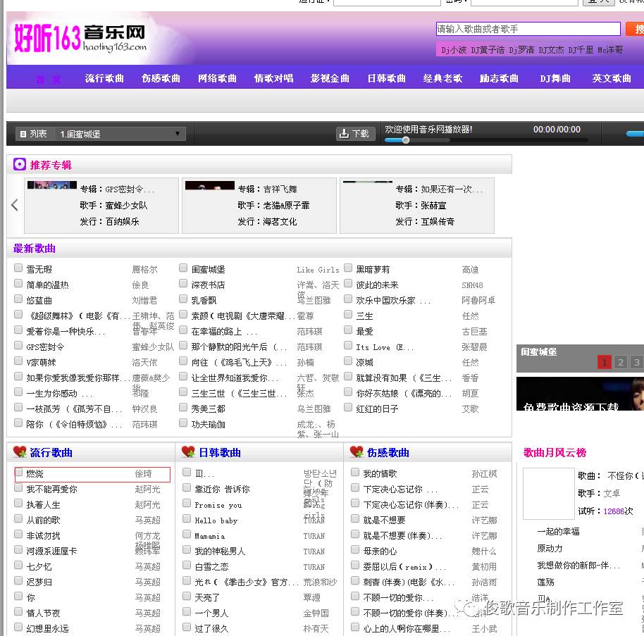 (九酷音乐网、56音乐网、365音乐网、音乐巴士、5ND音乐网、今生缘音乐网、玫瑰音乐网、我想听音乐网、我听一听音乐网、魔音吧、多比多音乐网等。)