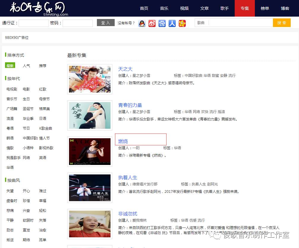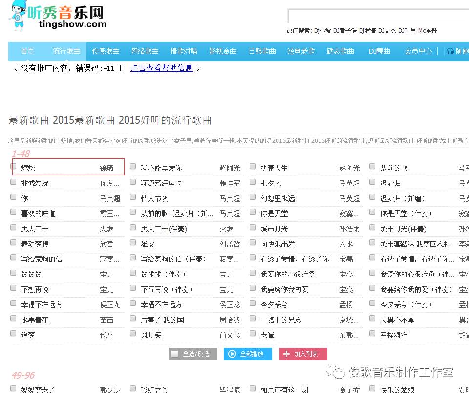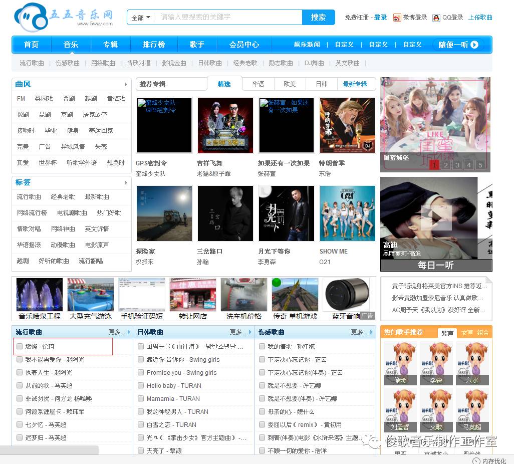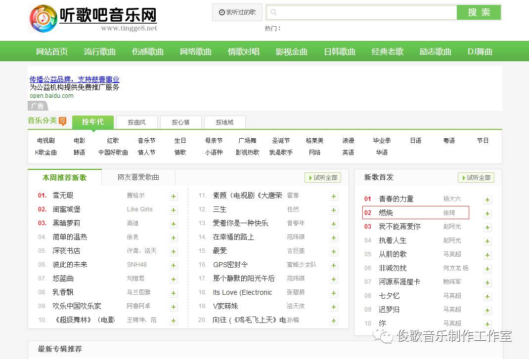 (九酷音乐网、56音乐网、365音乐网、音乐巴士、5ND音乐网、今生缘音乐网、玫瑰音乐网、我想听音乐网、我听一听音乐网、魔音吧、多比多音乐网等。)