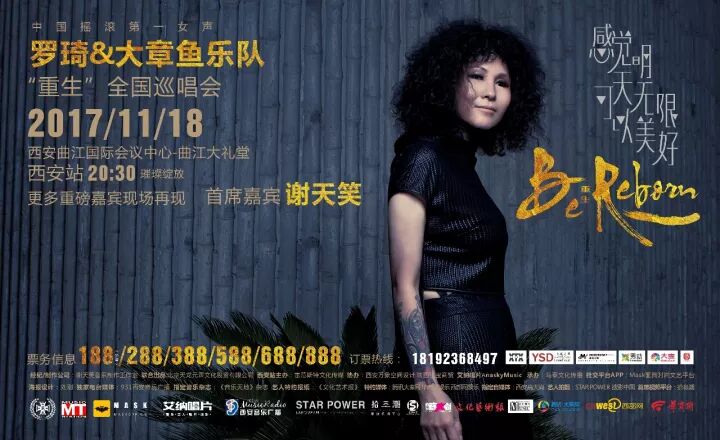 在罗琦&大章鱼乐队、出品方和各地主办方的共同筹备中,罗琦&大章鱼乐队2017年“重生”全国巡回演唱会的大幕正式拉开。首席嘉宾谢天笑和重磅神秘嘉宾亲临助阵,与你一起以摇滚的名义绽放。