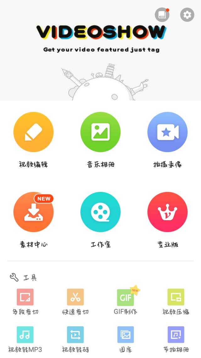 乐秀视频编辑也有着众多功能,光是看截图就能知道个一二三。开始界面里的“视频剪辑”和“音乐相册”除了名字不一样之外没有任何区别呀,两个点进去都是可以导入视频或者图片的,大概制作方是为了把功能凑个双数吧。