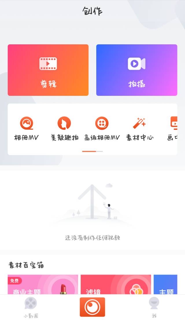小影不单纯有视频剪辑功能还有视频社交功能,在这里我们着重介绍它的视频剪辑功能。小影的开机会有3秒的广告时间,并且普通用户是无法去掉水印的,这算是它的缺点吧。