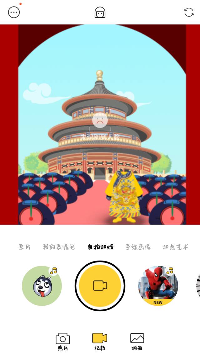 它有表情包拍摄、各种精分的动画自拍、手绘画像、最近火热的名画拍摄、偏动画风格的特效以及文艺青年比较能接受的电影滤镜,最后一个是名为“超有病”的艺术与现实结合的拍摄模式。