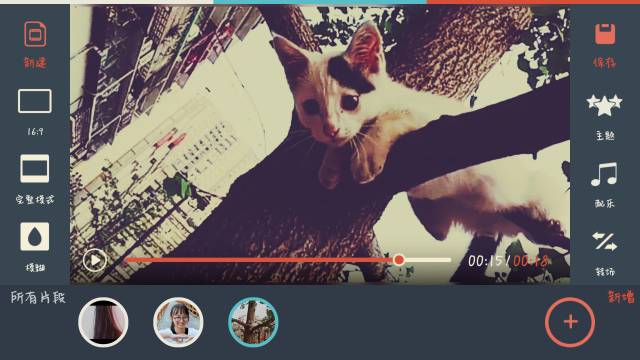 它提供6种画幅、6种拍摄时长、16种滤镜、3种镜头速度。剪辑时,它支持镜头的推进拉远,可添加字幕、音乐、贴纸,各分镜头的顺序也可以随意调换。