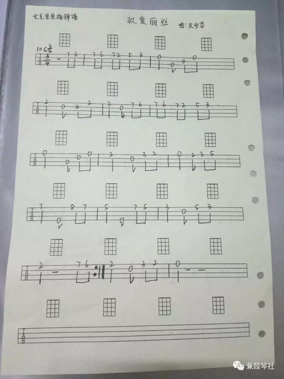 尤克里里手写弹唱曲谱
